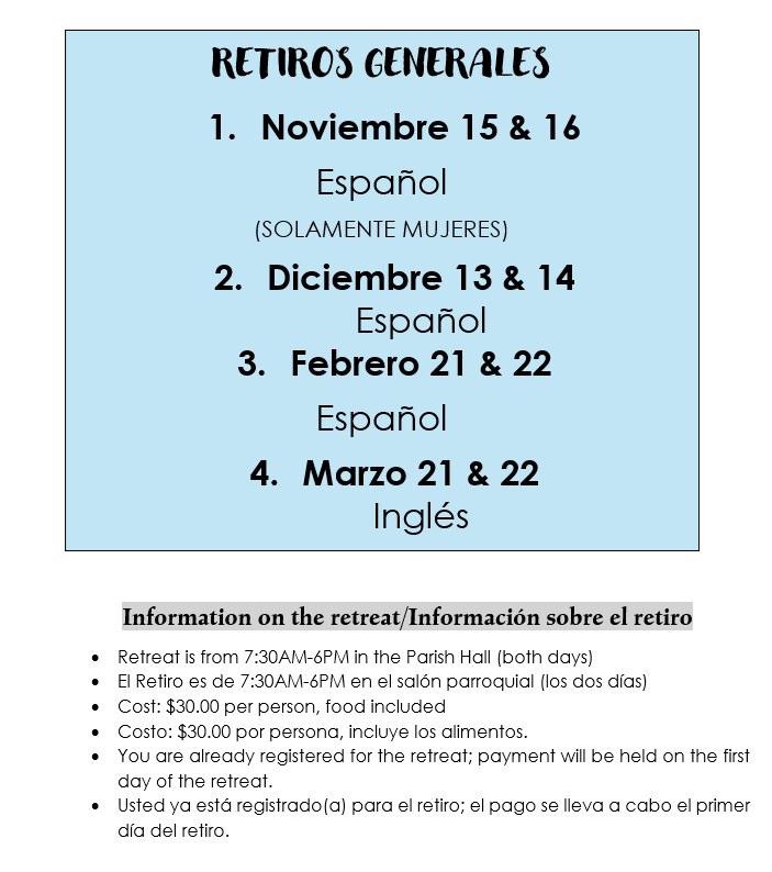 Retreat Opportunities 2025-2026 for parents and Godparents/Oportunidades de Retiro 2025-2026 para padres de familia y padrinos